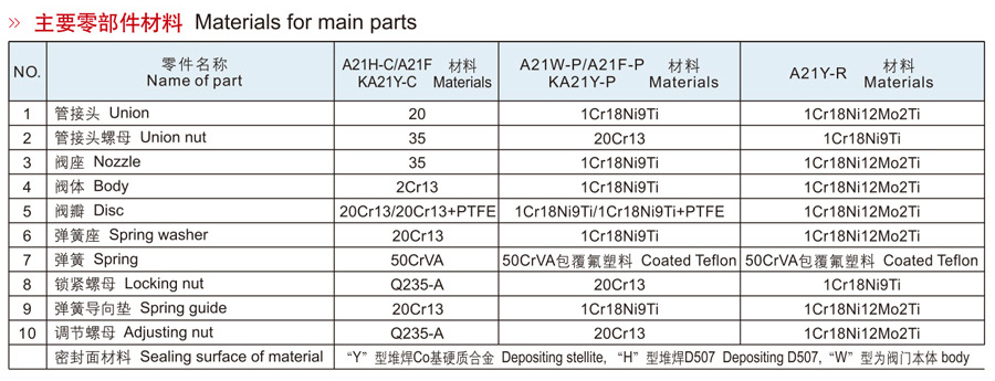 A21F、A21 H-C型适用于工作温度≤200℃的空气、氨、石油气......等介质的设备或管路上。A21W-P、R型适用于温度≤200℃有腐蚀性的气体或液体的设备或管路上,作为超压保护装置。KA21Y型适用于温度≤100℃的液化石油气等。